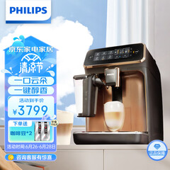 ¥3799.00飞利浦(PHILIPS)云朵咖啡机3系EP3146/72 家用/办公室意式浓缩萃取全自动研磨一体机 奶泡现磨咖啡豆系统