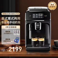 ¥2499.00飞利浦(PHILIPS)咖啡机 家用全自动意式黑珍珠咖啡机 入门款 手动奶泡机 触控屏 12档细致研磨 高压冲煮 高压萃取 EP1221/82