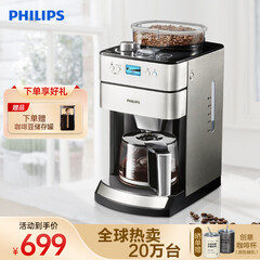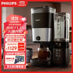 ¥1999.00飞利浦(PHILIPS)美式咖啡机双豆仓混合研磨一体家用全自动 豆粉两用 自动清洁 智能保温 咖啡壶 【全新升级上市】现磨醇香+大容量