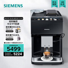 ¥3499.00西门子(Siemens)全自动咖啡机 家用意式15Bar一键双杯奶泡机欧洲进口德国精工3档研磨独立彩屏TI353809CN
