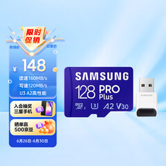 ¥159.00三星(SAMSUNG)128GB TF(MicroSD)存储卡PRO Plus读速160MB/s写速120MB/s高速内存卡原装读卡器套装