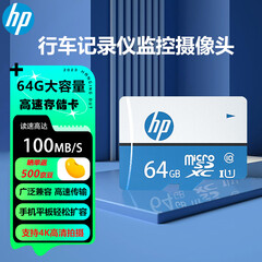 ¥29.90惠普(HP)64GB TF(MicroSD)存储卡U1 A1 C10 高速移动版 行车记录仪&监控&手机内存卡 读速100MB/S