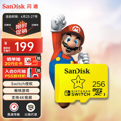 ¥199.00闪迪(SanDisk)256GB TF(MicroSD)存储卡 U3 4K 读速100MB/s 任天堂Switch授权 超级马里奥主题款