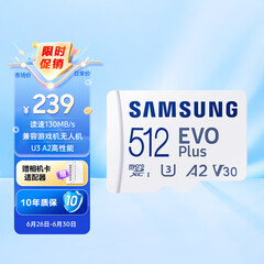 ¥249.00三星(SAMSUNG)512GB TF(MicroSD)存储卡EVO Plus U3 V30 A2读130MB/s高速游戏机平板内存卡