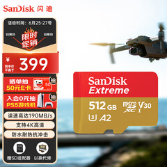¥409.00闪迪(SanDisk)A2 512GB TF(MicroSD)存储卡 V30 U3 4K 至尊极速移动版内存卡 读速190MB/s 写速130MB/s