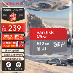 ¥249.00闪迪(SanDisk)512GB TF(MicroSD)内存卡 U1 C10 A1 至尊高速移动版 读速150MB/s 手机平板游戏机存储卡