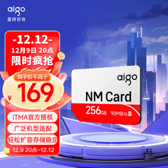 ¥169.00爱国者(aigo)256GB NM存储卡(NM CARD)华为手机平板内存卡 适配Mate/nova/P多系列 高速NM卡 4K高清视频卡