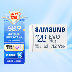 ¥62.90三星(SAMSUNG)128GB TF(MicroSD)存储卡EVO Plus U3 V30 A2读130MB/s高速游戏机平板内存卡