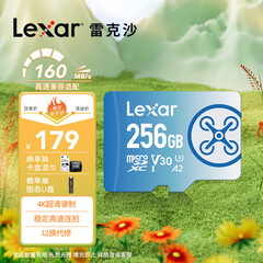 ¥179.00雷克沙(Lexar)256GB TF(MicroSD)存储卡 C10 U3 V30 A2 读速160MB/s 无人机超清4K连拍录制内存卡(FLY)