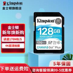 ¥129.00金士顿(Kingston)SD存储大卡 高速相机内存卡单反微单sd卡 class10 U3 V30 SDG3/128G【读速170M/S 丨4K超清】