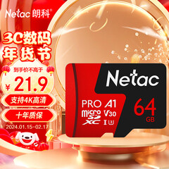 ¥20.68朗科(Netac)64GB TF(MicroSD)存储卡 A1 U3 V30 4K 高度耐用行车记录仪&监控摄像头内存卡 读速100MB/s