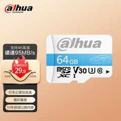 ¥34.90大华(Dahua) 64GB TF(MicroSD)存储卡 U3 C10 A1 V30 4K C100系列 读速95MB/s 高速游戏机平板内存卡