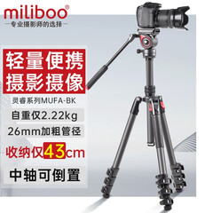 ¥869.00miliboo 【7大仓 发货】米泊碳纤维三脚架单反摄影摄像两用三角架带动态液压云台 中轴倒置 MUFA-BK(铝合金)