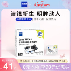 ¥41.70zeiss蔡司 镜头清洁 眼镜布 镜片清洁 擦镜纸 擦眼镜 清洁湿巾 60片装