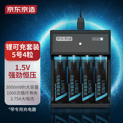 ¥106.00京东京造 5号充电电池 锂电池 1.5V恒压 Type-C充电 1000次循环充 4节快充充电套装 3000mWh