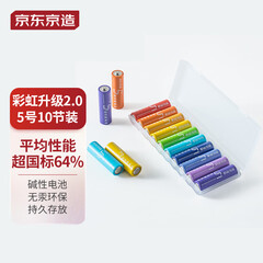 ¥11.90京东京造 5号超性能彩虹电池碱性环保无铅汞10节送收纳盒 血压计/血糖仪/遥控器/挂钟/ 指纹锁/体脂称/鼠标