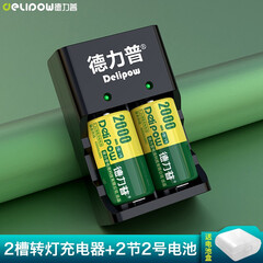 ¥52.80德力普(Delipow)充电电池 2号电池/C型二号电池充电套装 适用手电筒/收音机/热水器/燃气灶 2槽充电器+2节2号2000毫安充电电池