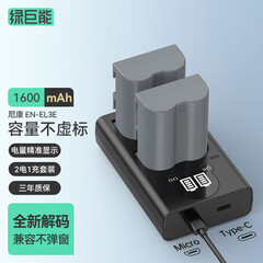 ¥199.00绿巨能(llano)尼康电池 EN-EL3E相机电池充电器 适用D80/D90/D100/D300/D700/D70S/G9X单反数码两电双充