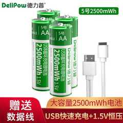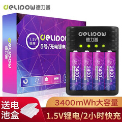 ¥89.87德力普(Delipow) 充电电池 5号锂电池1.5V恒压大容量3400mWh锂电池充电套装 充电器+4节5号3400mWh锂电池