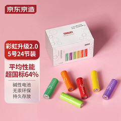 ¥26.99京东京造 碱性彩虹电池 5号24节装 超性能无铅无汞 适用血压计/血糖仪/指纹锁/遥控器/电子称/儿童玩具