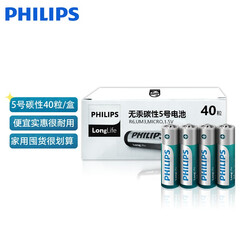 ¥25.90飞利浦(PHILIPS)碳性5号电池40粒盒干电池适用低耗电玩具/遥控器挂钟体脂称闹钟/计算器体温枪五号电池5号
