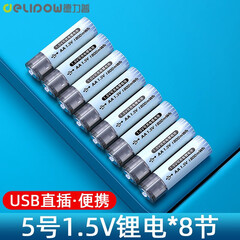 ¥146.00德力普(Delipow) USB充电电池5号锂电池大容量快充1.5v恒压AA适用血压仪电子锁鼠标手柄 8节5号1800mWh锂电池【USB直插充电】