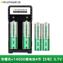 ¥63.80德力普(Delipow) 14500锂电池 5号充电电池大容量3.7V强光手电筒鼠标电池 双槽充电器+4节14500锂电池3.7v