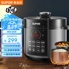 ¥349.00苏泊尔(SUPOR)国潮系列电压力锅6L大容量全自动智能预约家用保温煲汤煮粥 面板易清洁双内胆60YC8086高压锅4-8人