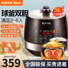 ¥459.00苏泊尔(SUPOR)电压力锅5L家用高压锅智能触控球釜双胆开盖收汁一键排压24H预约多功能菜单 5L双胆电压锅防水面板