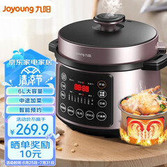 ¥409.90九阳(Joyoung)电压力锅6L大容量压力煲智能家用电高压锅一锅双胆大屏一键操作预约定时开盖收汁压力锅煮饭煲 60C72