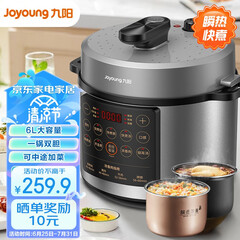 ¥279.90九阳(Joyoung)智能家用6L大容量电压力锅压力煲电高压锅一锅双胆大屏一键操作压力锅煮饭煲6升Y-60C817(B)