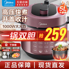 ¥509.00美的(Midea)电压力锅 5升双胆家用高压锅 智能预约 上盖可拆洗电高压锅 12H智能预约 5L高压力锅 5026P