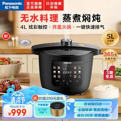 ¥1255.00松下(Panasonic) 电压力锅家用焗鲜锅PC401多功能压力电饭煲4L大容量电高压锅1-6人智能高压锅 NF-PC401-K 4L