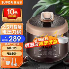 ¥399.00苏泊尔(SUPOR) 电压力锅家用2.5L电高压锅小容量1-2-3人一键排气迷你智能预约煮饭煲汤锅 咖啡色