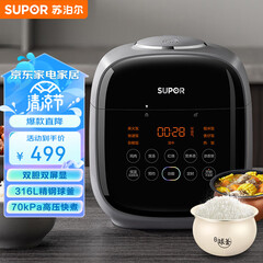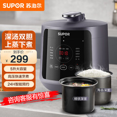 ¥349.00苏泊尔(SUPOR)深汤系列电压力锅5L家用全自动智能预约蒸笼上蒸下煮开盖火锅触控面板SY-50YC8011双胆高压锅3-6人