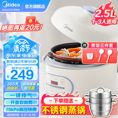 ¥269.00美的(Midea)智能电压力锅小高压锅2.5L宿舍多功能高压快煮智能预约开盖收汁压力锅YL25E331(1-3人食用)