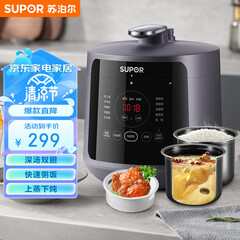 ¥309.00苏泊尔(SUPOR)国潮系列电压力锅5L全自动智能预约家用保温煲汤煮粥 多功能面板易清洁双内胆50YC9086高压锅3-6人