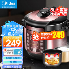 ¥229.00美的(Midea)智能电压力锅5L家用多功能 不粘双胆 智能预约 收汁入味 大火力 高压锅50A1P(3-6人食用)