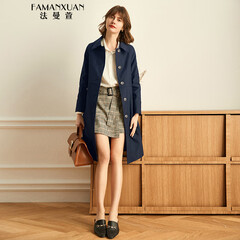 ¥699.00法曼萱风衣外套女中长款2023年新款春秋款小个子气质韩版女士外套 藏蓝色 160/84A/S