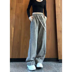 ¥159.00AEMAPE美国苹果设计感竖条纹阔腿裤2023春夏新款休闲裤女高腰垂感直筒裤 灰色 M【100-115斤】