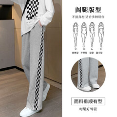 ¥99.00品彩春季休闲裤宽松卫裤运动裤女松紧腰长裤棋盘格子裤子 PW22KP9