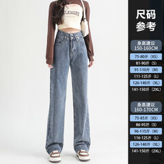 ¥168.00沃歌蕾 窄版阔腿牛仔裤女2023新款春季高腰显瘦百搭潮流ins加长直筒裤 复古蓝长裤 2XL码 建议136-150斤
