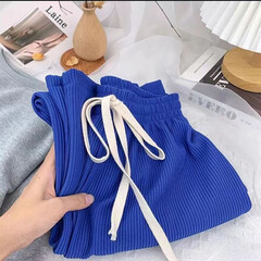 ¥299.00楠飞华裳【第二件(18.9)留言颜色】蛇骨纹阔腿裤女高腰薄款休闲显瘦拖地裤 蛇骨纹阔腿裤-蓝色 L【建议110-125斤】