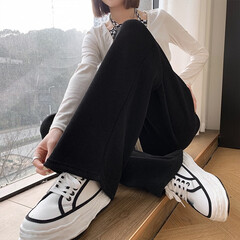 ¥29.00浪莎阔腿裤女春夏高腰垂感显瘦黑色直筒宽松休闲早春常规长裤 【常规款】黑色 XL码(建议120~135斤)