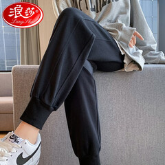 ¥79.00浪莎运动裤女春秋季宽松灰色裤子2023新款女装高腰显瘦束脚休闲卫裤 黑色(春秋款) L(95-110斤)