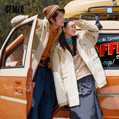 ¥398.00森马棉服男2022宽松仿羊羔绒拼接活力绣花冬季保暖立领潮绿白色调00341M