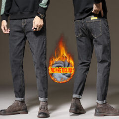 ¥109.00遥渠(YAO QU)牛仔裤男秋冬新品牛仔裤男直筒宽松休闲长裤韩版潮流百搭裤子男潮牌加绒加厚裤 921-黑灰色(加绒加厚) 36