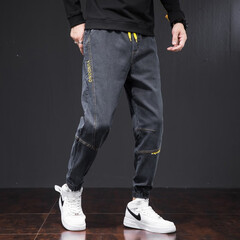 ¥158.00AEMAPE牛仔裤男宽松大码潮流休闲束脚裤子男装jr1921 黑色加绒 4XL