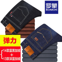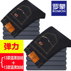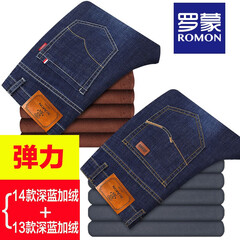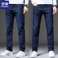 ¥178.00罗蒙(ROMON)牛仔裤男春夏新款商务休闲男士宽松直筒长裤子大码薄款棉弹裤男裤 13深蓝加绒+14深蓝加绒 32(推荐2尺5腰围)