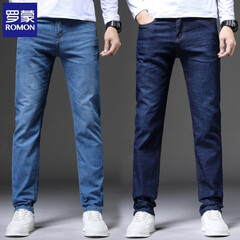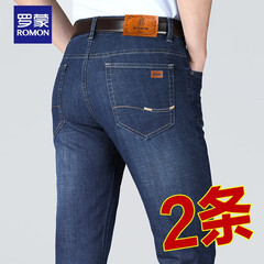 ¥198.00罗蒙(ROMON)两条装罗蒙牛仔裤男春夏新款商务休闲男士直筒长裤子棉弹宽松男装 蓝色加绒+蓝色加绒 32(推荐2尺5腰围)